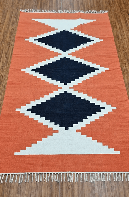 Orange Black Eco Friendly Bohemian Rug, Handwoven Cotton Rugs, Large Area Rug for Living Room Rug, Outdoor Rug, Kitchen Rug 5x8 Feet