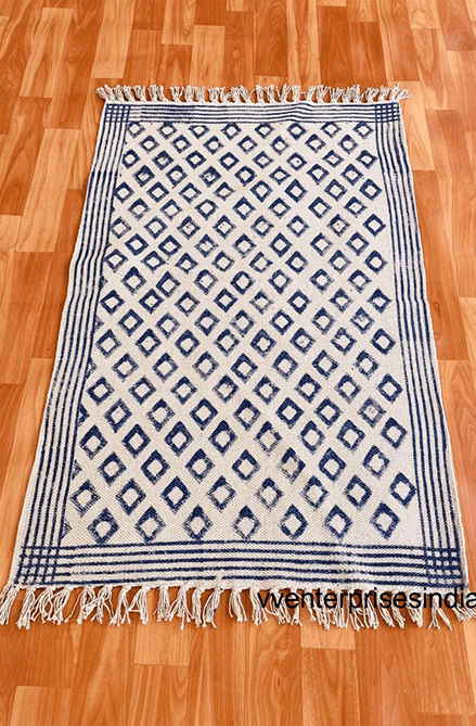 Handmade Printed Rug, Hand block Printed Rug, Handblock Decorative Rug, Handblock Indian Duri Carpet, Printed Rug, Door Mat Floor Area Rug, Hand woven Rug