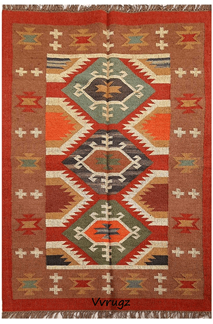 Navajo Wool Jute Kilim Rug, Wool and Jute Rug, Modern Desgin Dining Room Rug, Handwoven Wool Jute Rug, Living Room Rug, Handmade Traditional Indian Wool Jute Rug